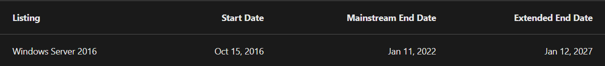 On January 12, 2027, Windows Server 2016 will be discontinued, and Windows Server 2016 will no longer receive any updates. Upgrade to Windows Server 2019 (or above)!